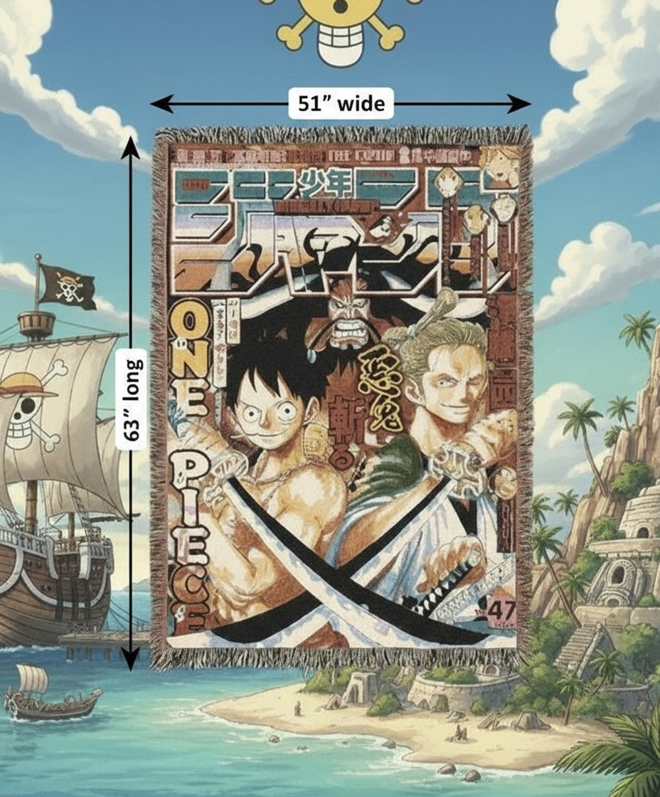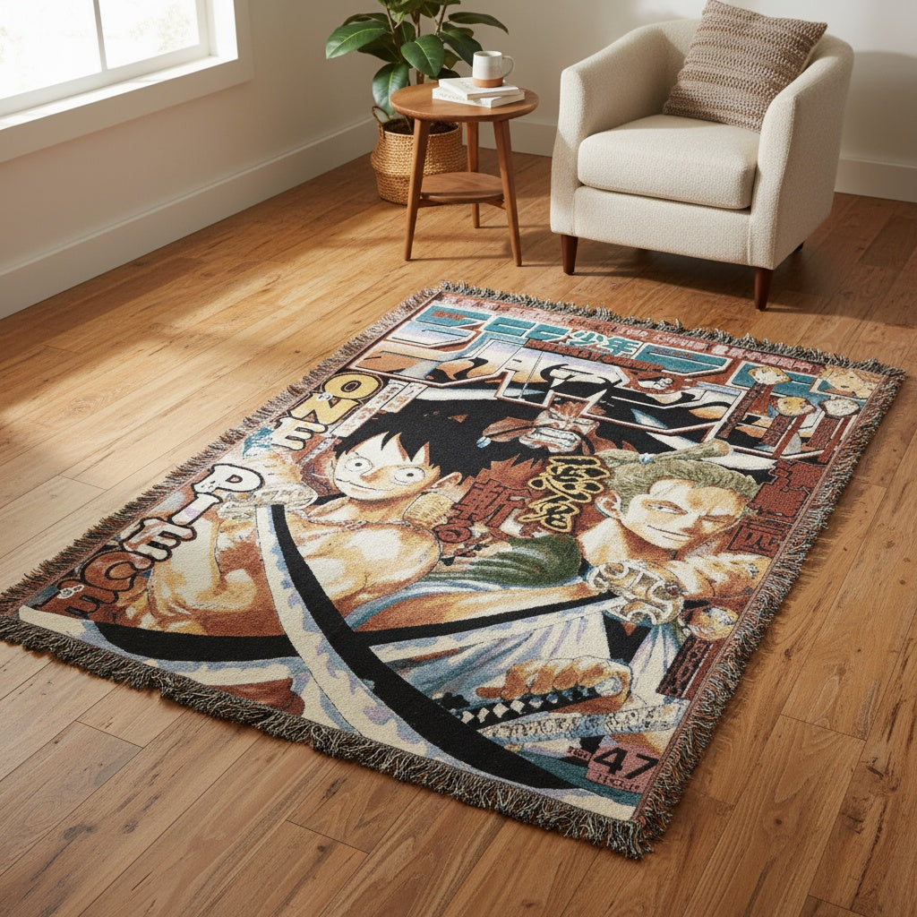 Our tapestry blankets are crafted from premium woven fabric, soft and durable, made to keep you cozy while bringing your favorite anime worlds to life in your space.